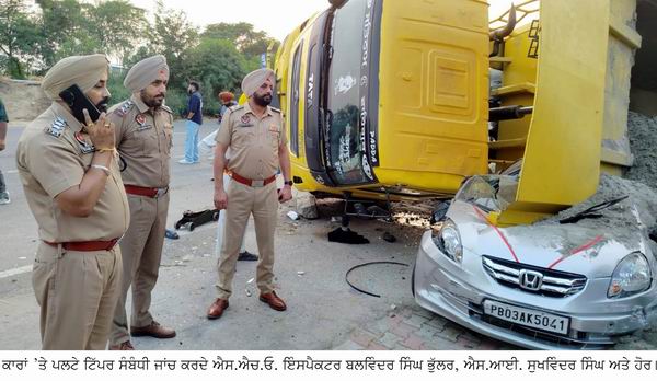 ਮਲਸੀਆਂ ਵਿਖੇ ਕਾਰ ਬਜ਼ਾਰ ਦੇ ਬਾਹਰ ਖੜ੍ਹੀਆਂ ਕਾਰਾਂ ’ਤੇ ਰੇਤ ਨਾਲ ਭਰਿਆ ਟਿੱਪਰ ਪਲਟਿਆ